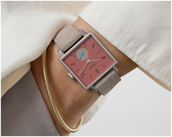 テトラの新シリーズ、テトラ アルーアが登場しました。 新たに加わるテトラは気品にあふれる華やかな4色。優しい色味のコントラストカラーが美しいアルーアは、スモールセコンドのピンクとの対比で『高嶺の花』を象徴するサンレイシルバー、『揺るがない決心』を表すロマンティックなローズ、『激情』を歌い上げる自信に溢れた大胆なオーベルジーヌ、『気まぐれ』さを見せるソフトなヌードカラーです。 ストラップにはノモス社初のアルカンターラ社製ヴィーガンベロアストラップを使用。カーボンフリー素材ながら外観と触感は天然スエードに近く、さわやかな着け心地で通気性も良く、耐久性にも優れています。優しいベルベットグレイのヘリ返しストラップがこの美しく奏でるテトラを装います。 内側で時を刻むのは手巻きのアルファキャリバー。グラスヒュッテの工房で作られ、高い信頼性と精緻な装飾を誇ります。スタイルのある人にふさわしい、すべてのディテールにこだわったテトラ アルーアです。 この華やかなテトラ アルーアはノモスグラスヒュッテ表参道とフォーチュンタイム阪急メンズ東京店の直営店2店舗限定でのお取り扱いです。 |